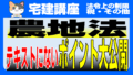 宅建試験での農地法の1問については、どうしても後回しにしがちで、実際の試験で迷ってしまうことがよくあります。ポイントを掴めばそれほど難しくなく、確実に1点を目指せる問題ですので、この動画で自信をつけて、宅建試験に合格しよう!