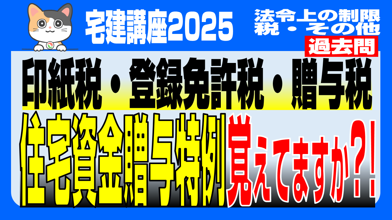 【宅建2025税その他過去問】印紙税・登録免許税・贈与税 住宅資金特例覚えてますか? もらえないのは年収制限?それとも年齢制限? わからない方は今すぐチェック!