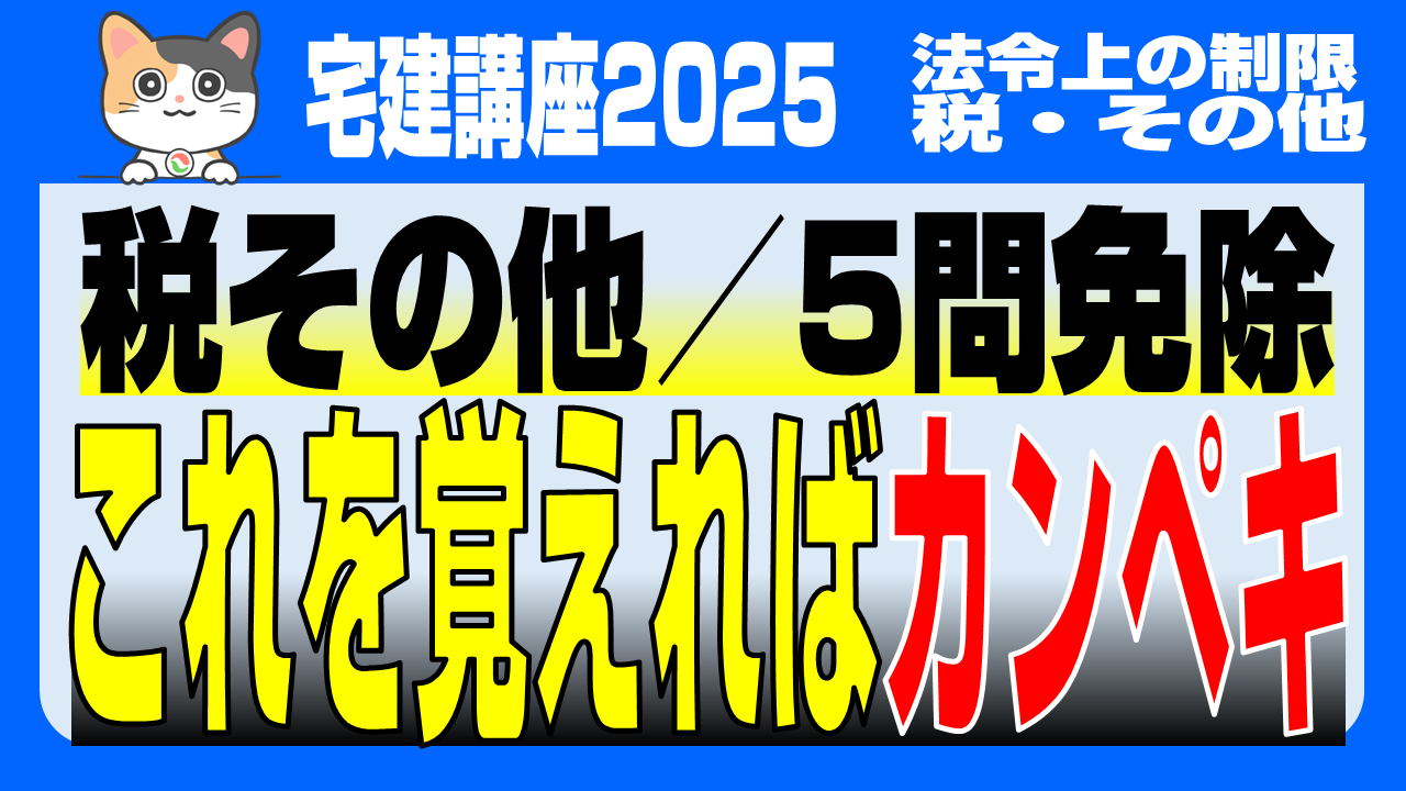 【宅建2025税・その他】5問免除 これを覚えればカンペキ 5問免除だからといって舐めてかかるのは大変危険!初心者向けに要点をピックアップして徹底解説します!