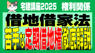 借地借家法のいちばん厄介な部分は、定期建物賃貸借、定期借地権、一般的な建物賃貸借、一般的な借地権のパターンを覚えなければならないということです。でも借地借家法は、毎年必ず出る試験ですから、集中的に攻めることで、宅建試験合格に大きく近づきます...